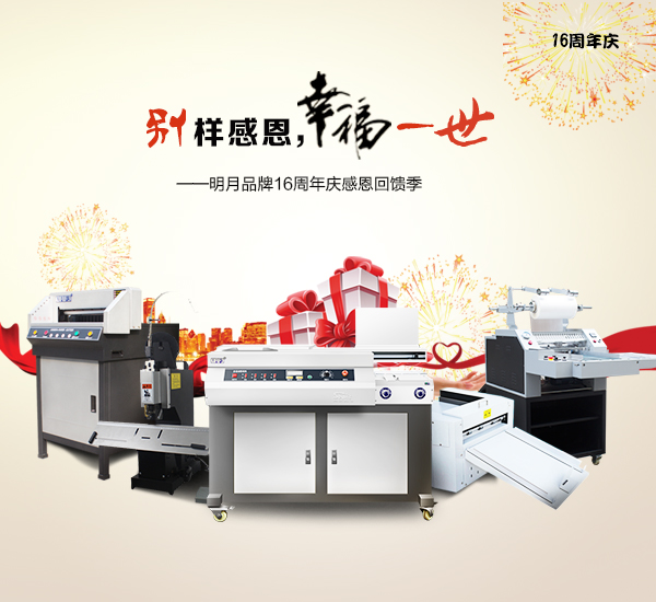 明月是國(guó)內(nèi)頂尖知名老品牌印后設(shè)備,從2004年第一臺(tái)明月膠裝機(jī)上市以來(lái),經(jīng)過(guò)近20年的不斷磨礪,現(xiàn)已成為廣大用戶(hù)的優(yōu)選品牌。明月印后設(shè)備包括:全自動(dòng)無(wú)線(xiàn)膠裝機(jī)、全自動(dòng)切紙機(jī)、全自動(dòng)覆膜機(jī)、數(shù)碼壓痕機(jī)等,截止至2019年5月,明月系列產(chǎn)品
