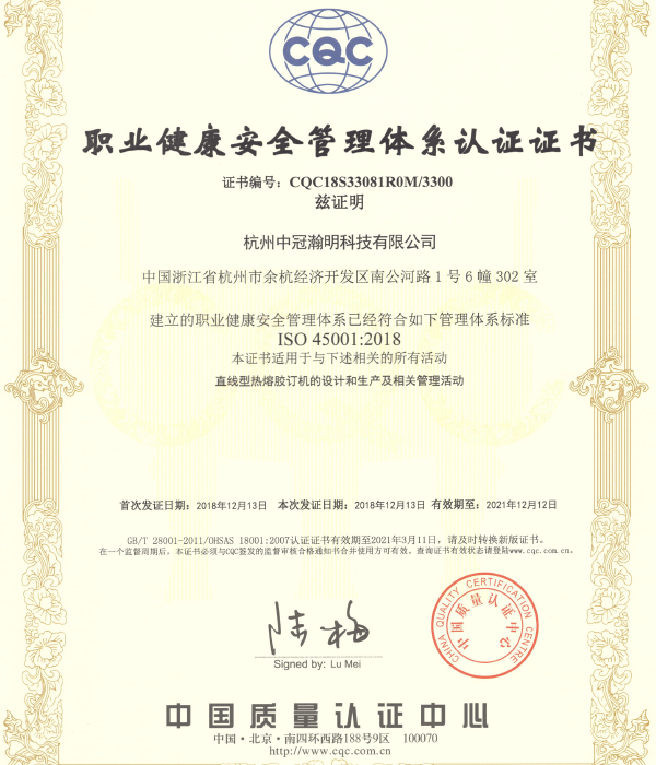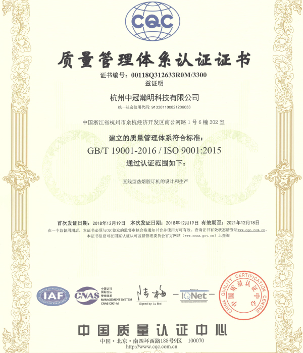 杭州中冠瀚明科技有限公司,成立于2013年,位于風(fēng)景秀麗的杭州,是一家專業(yè)生產(chǎn)印后設(shè)備的企業(yè)。公司先后獲得“國家高新技術(shù)企業(yè)”、“省區(qū)級研發(fā)中心”等稱號,2018年列入“浙江制造品牌重點培育企業(yè)”、通過了“ISO9001\ISO14001\ISO45001"體系認(rèn)證,知識產(chǎn)權(quán)貫標(biāo)認(rèn)證及歐盟的CE認(rèn)證。多次獲得了區(qū)政府的表彰。