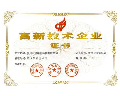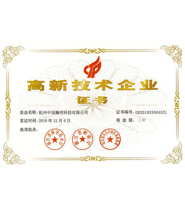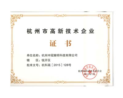 中冠瀚明被杭州市科學(xué)技術(shù)委員會授權(quán)《杭州市高新技術(shù)企業(yè)》稱號