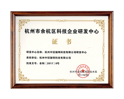 榮獲杭州余杭科技企業(yè)研發(fā)中心證書