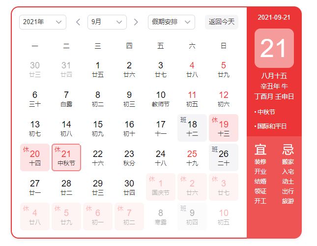 2021年中秋節(jié)放假通知
