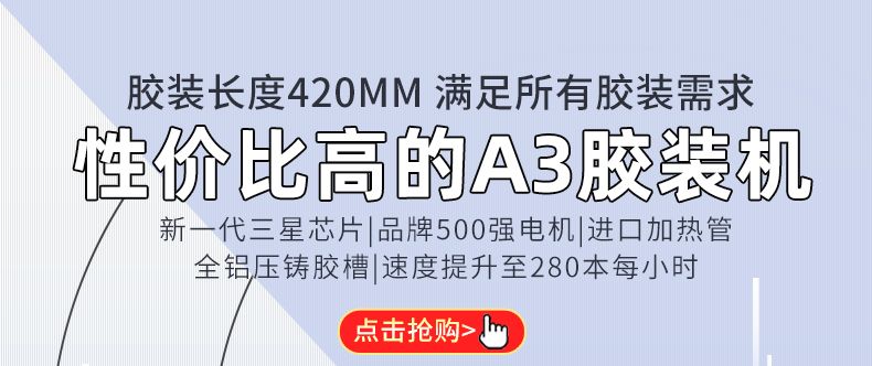 1.性價比最高的A3機型,膠裝長度420mm。