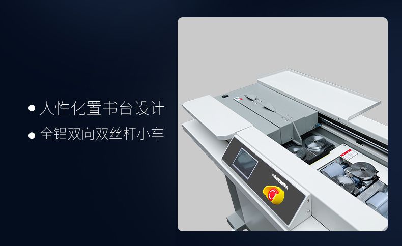 4.小車夾緊傳動,采用8導軌加3絲桿設計使裝訂書本時運行平穩(wěn)不會晃動。小車夾板采用加固鋁板結果不會出現(xiàn)變形的情況