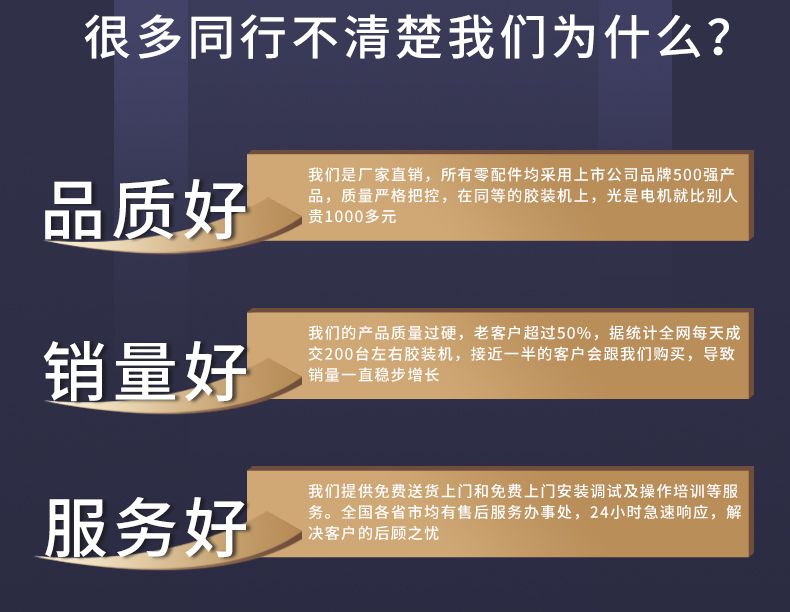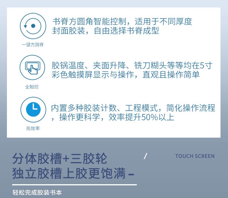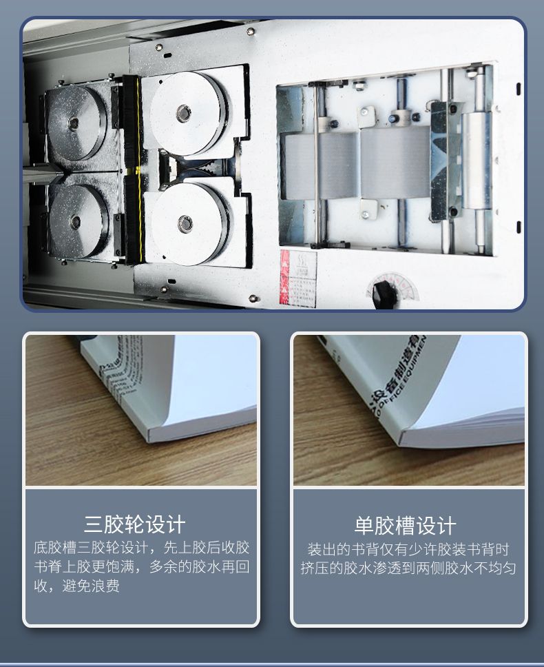 1.三膠輪加獨立側膠設計,膠裝牢固度不是一般膠裝機可比